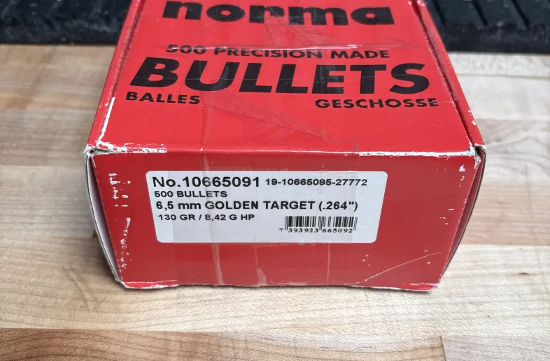 Up for sale is a box of Norma Golden Target .264 / 6.5 mm 130 gr bullets. Asking $375 plus shipping and also happy to do a FTF deal in the GTA.