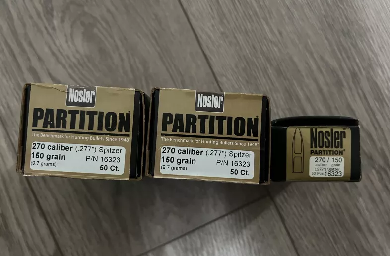Nosler Partition 270 Caliber 150 Grain Bullets