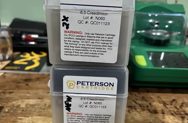 Selling two boxes of Peterson brass for 6.5 creedmore one box is brand new unopened and one is twice fired with 49 pieces they are LRP asking $140.00 for both plus your shipping