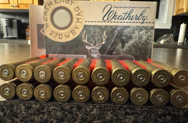 30.00$ plus shipping. Weatherby brass 1x fired from Mark V. Caliber is 270 wby magnum.