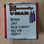 -Hornady 6mm 58gr Vmax (50 bullets) $20