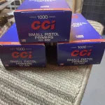 3000 CCI SMALL PISTOL PRIMERS for sale. Three bricks. $100 each or $250 for all three. Primers are located in southwest Edmonton. If interested call or text 306-539-5139.