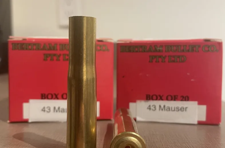 2 boxes of 43 Mauser brass. This is new/unfired brass made by Bertram Brass in Australia.
