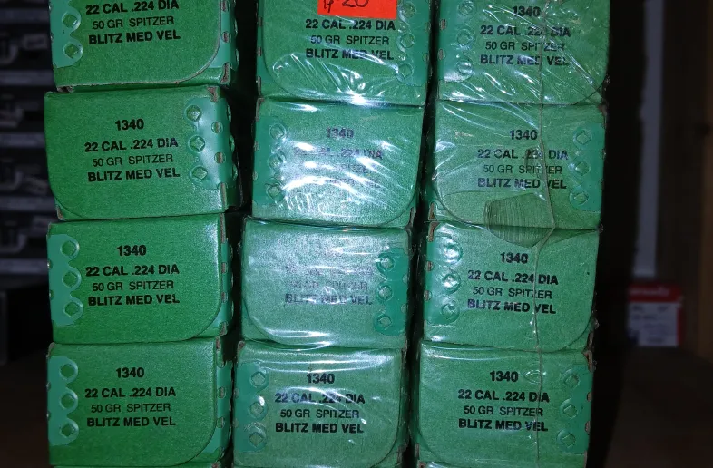 SIERRA .224 50gr BLITZ MED VELOCITY FROM AN ESTATE. THESE BULLETS ARE MORE FRAGLE OR EXPOLSIVE THAN REGULAR BULLETS. MADE WITH A THINNER JACKET AND IS MADE FOR MED VELOCITYS LIKE 222,223, AND IS DESIGNED TO HAVE EXPLOSIVE EFFECT ON VARMINTS. GREAT BECAUSE YOU CAN WATCH THE ACTION IN YOUR SCOPE. $20/BOX , $100/5 BOXES