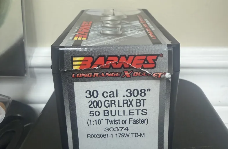 Full box of Barnes 200 grain 30 cal bullets.