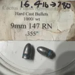 16.4lb of Cactus Plains 147gr LRN 9mm (.355) approx 780pcs by weight $60