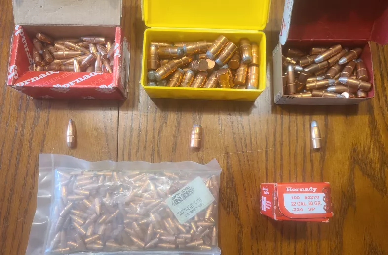 Hornady,and Speer rifle projectiles (224, 30 and 45 cal)