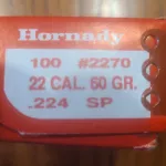 Hornady #2270 .224 60 gr Flat base Soft Point without cannelures x 89 (30)