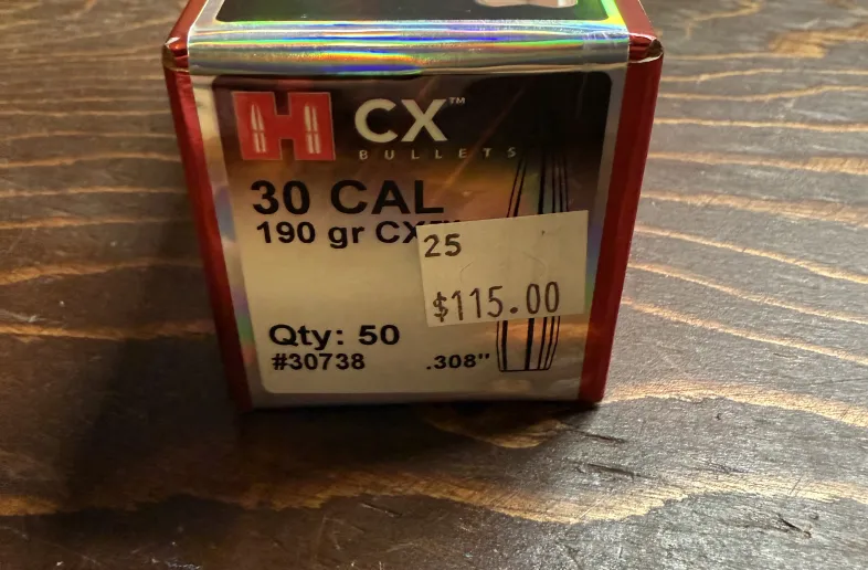 Unopened box of hornady 30 cal 190gr cx. Bought as a secondary bullet but was able to find my other choice to load. Will ship on your dollar
