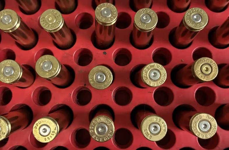 6.5×55 Swedish brass with mixed headstamps. Most cases have been reloaded at least one time and some have been reloaded up to three times max. Never use high-pressure loads only the lowest load from the reloading handbook.