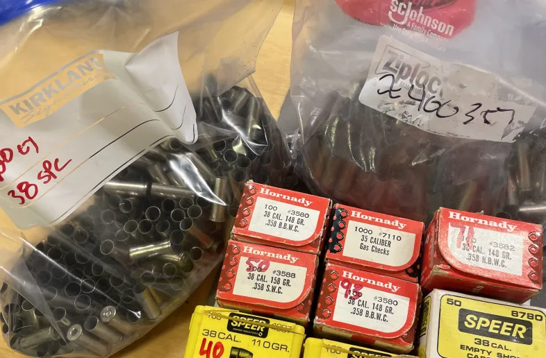 Assorted 38cal bullets, 400ct 38 spl and approx. 400 357 mag brass.
