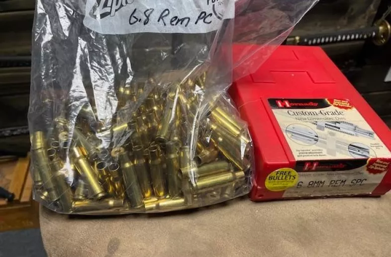 I have 173 pcs of cleaned, resized and ready to load 6.8 SPC brass with a set of Hornady dies for sale $130 shipped most places