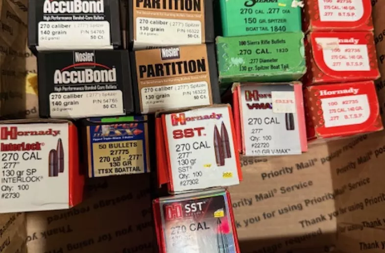 1. 270 cal. 110 grain Hornady V-Max 100CT in sealed box-- $60.00