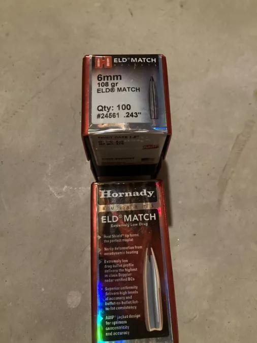 Hornady 108 ELDM bullets. $75 per box. 100 count boxes. 2 boxes of Lot 2220007. Willing to ship.