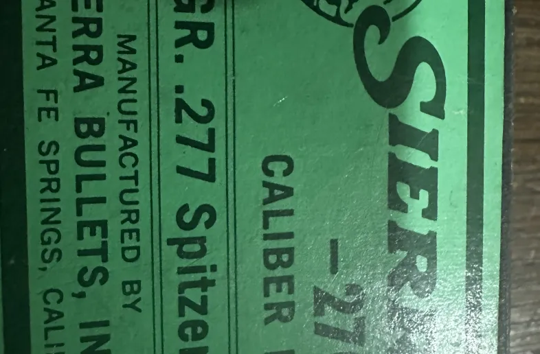 Two boxes of 130 gr..277 spritzer B.t.by Sierra. One box of 140gr Btsp interlock by Hornsby.