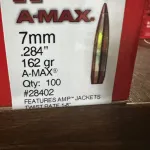 Two Boxes of sierra160gr. Spritzer Boat tail. Two Boxes of Hornady 120 gr.. Spire Hp. One Boxe of Hornady 162 gr with only 20 bullets in it One Boxe Nosier 150 gr with only 20 bullets in it