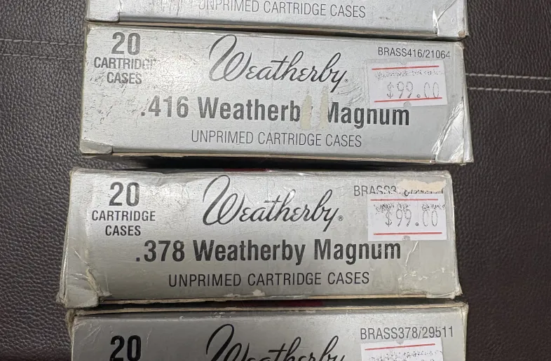 Brand new unprimed Weatherby brass in 416 Weatherby Magnum , $99 per 20 plus’s shipping . The 378 brass is sold