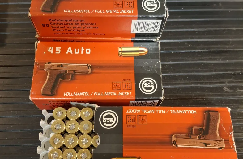 1)195 pieces of once fired 45acp brass. Geco headstamp.