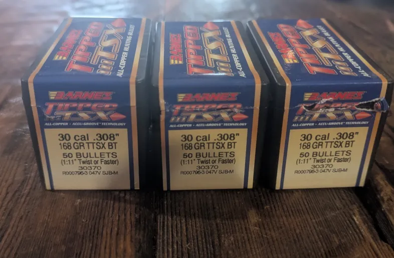 113x 30cal Barnes 168gr TTSX.