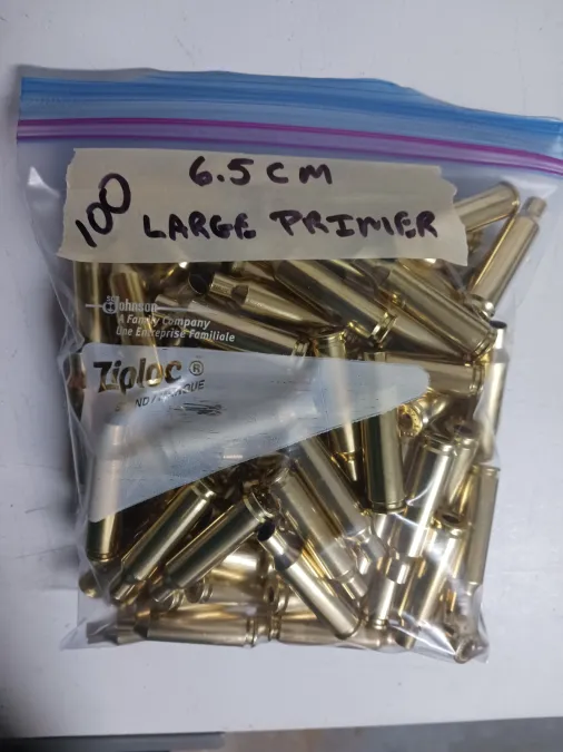 1F 6.5 CM - 100 Hornady Large Primer. Wet Polished, Resized, De-primed and Pockets Clean, Chamfered and Deburred, Ready to Load $SOLD