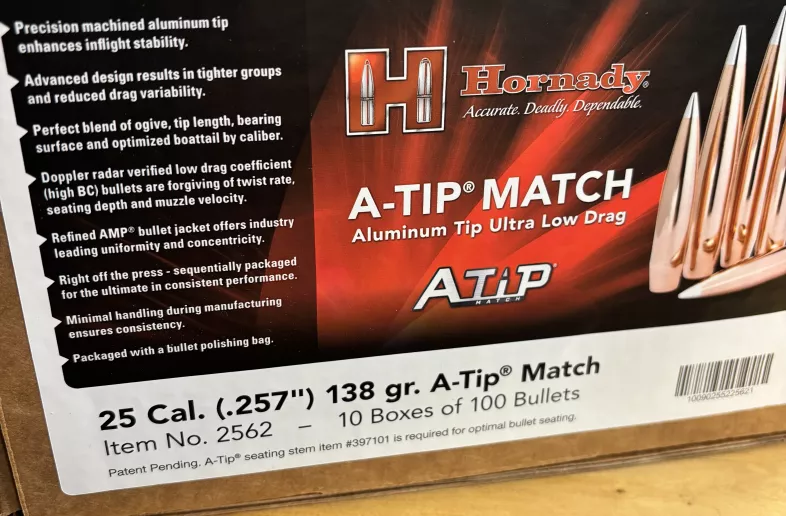 7 boxes + 60 bullets of Hornady 25 cal 0.257" 138gr A-Tip