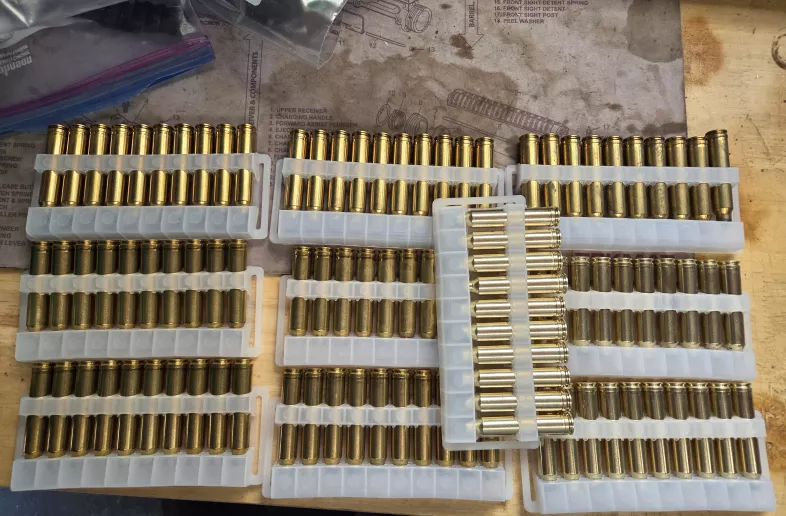 134 pieces of Federal once fired brass. They have been deprimed and run through a tumbler.