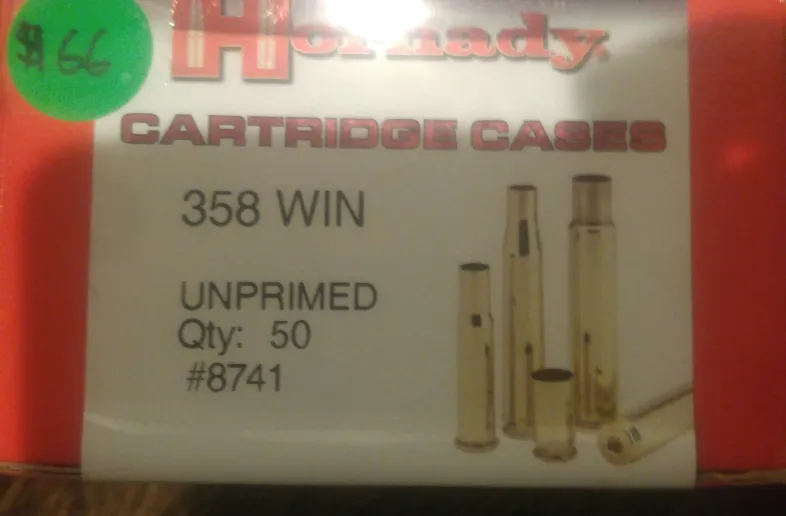 Virgin Hornady brand 358 winchester brass for sale. 4 boxes still available.