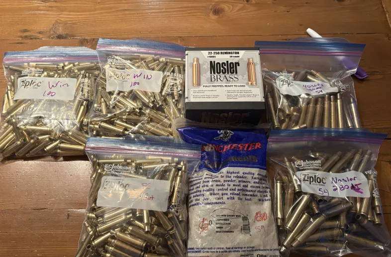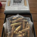 Nosler 280ai 2 and some 3x fired. Pretty sure I annealed this last spring then totally forgot about it. 2 -54ct bags. $35shipped per bag