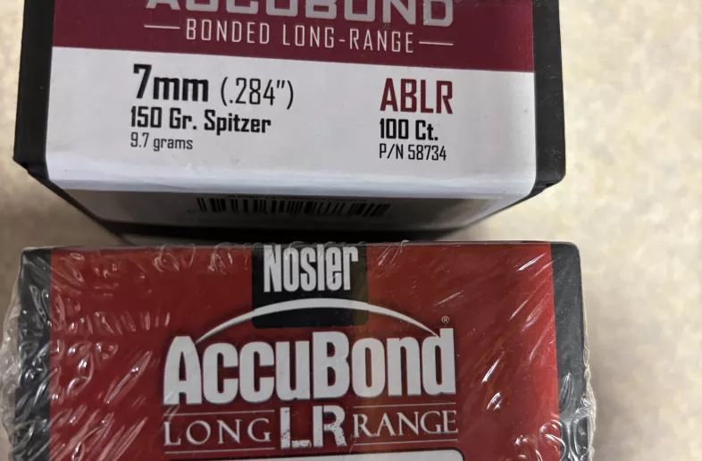 Have one sealed box, 100 count of Nosler Accubond LR 7mm 150 Gr Bullets $135.00.