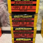 4 boxes of Berger EOL Elite Hunter bullets, 6.5 mm, 156 gr. Price per box $100.00.