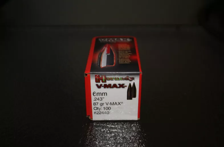 unopened box of .243 , 6mm, #22440, 87 gr V-max