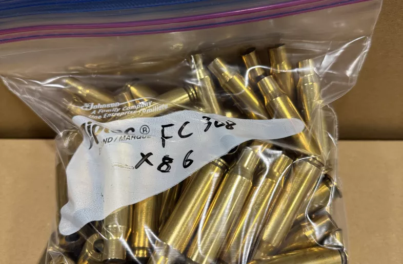 308 Once Fired, Wet Tumbled Brass (FD Stamp)