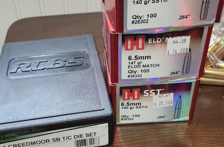For sale RCBS 6.5 creedmore dies. Hornaday 140 gr.sst 54 pieces.147gr,eld match 80 pieces.140gr sst 100. pieces.68 pieces of mixed brass.some sized and primed some just sized.$250.00.no shipping.call or text 902-893-0781.