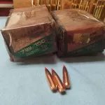 2 boxes of 150 grain Nosler ballistic tip bullets, 12 new 7mm Mauser brass and 38 once fired 7mm Mauser brass RP brand. Some brass cases have some discoloration as I have tried to show from storage but not affecting function. Nosler boxes are in terrible condition but bullets in plastic and excel shape. Price includes shipping