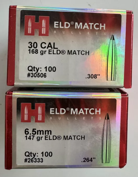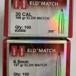 4.Hornady 30 Cal (.308), 168 grain, ELD-Match bullets # 30506. $80 per 100 count box. Last 2 boxes.