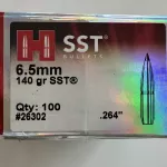 7. Hornady 6.5mm Cal (.264), 140 grain, SST bullets # 26302. $65 per 100 count box. Last 1 box