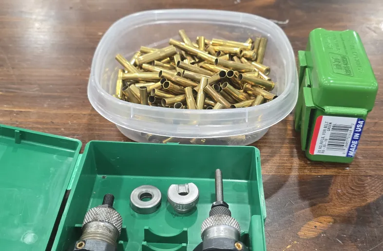22 Hornet F/L die set with shell holders and 138 cases