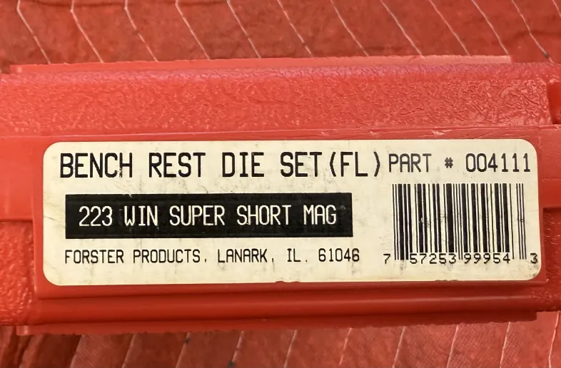 Forster 223 WSM Bench Rest Dies 150.00 Posted: Jan 23, 2026 Address: BELLEVILLE, ON, K8N 4Z7 Category Reloading Dies Bullet Diameter .22 cal. / 5.56 mm Great shape used a couple of times Visits: 63 Read our Online Safety Tips