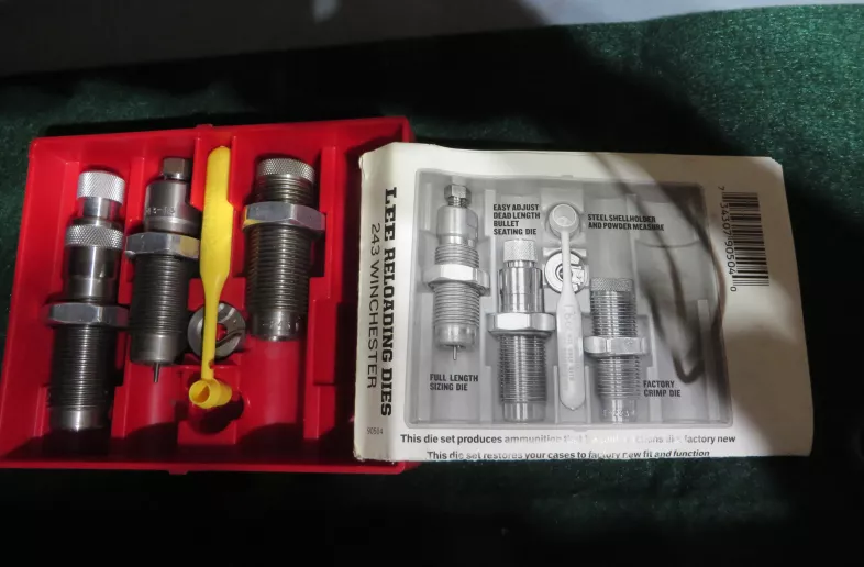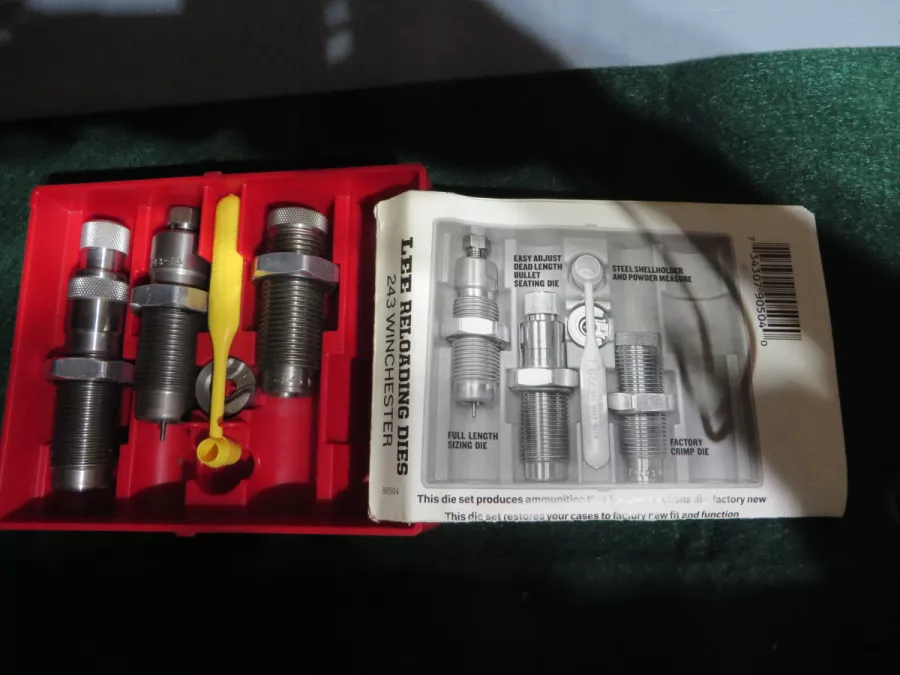 Lee .243 die set with 49 Hornady Varmint 87 gr BTHP bullets. Located in Cambridge.