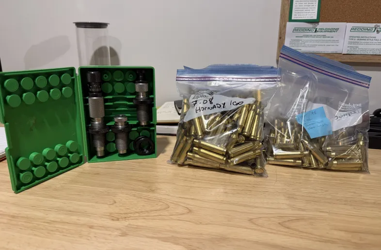 7mm 08 Redding competition type s die set and brass