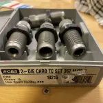 Carbide FL sizer die, expander die with a 38/357 plug, , seater die with a 38wc plug and a tapered crimp die with a 38/9mm RN plug and a #6 shell holder