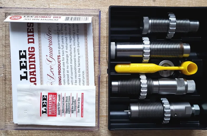 For sale a Lee Ultimate die set 300 win mag, asking $40 + shipping and a Lee die adapter bushing, threaded adapter to accept standard 7/8-14 dies, this item is now discontinued, asking $15 + shipping. EMT for payment. Thanks for looking.