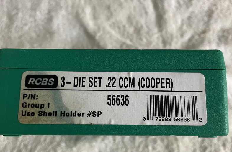 Rcbs 22 ccm cooper dies. Asking $80 and willing to ship at buyers expense