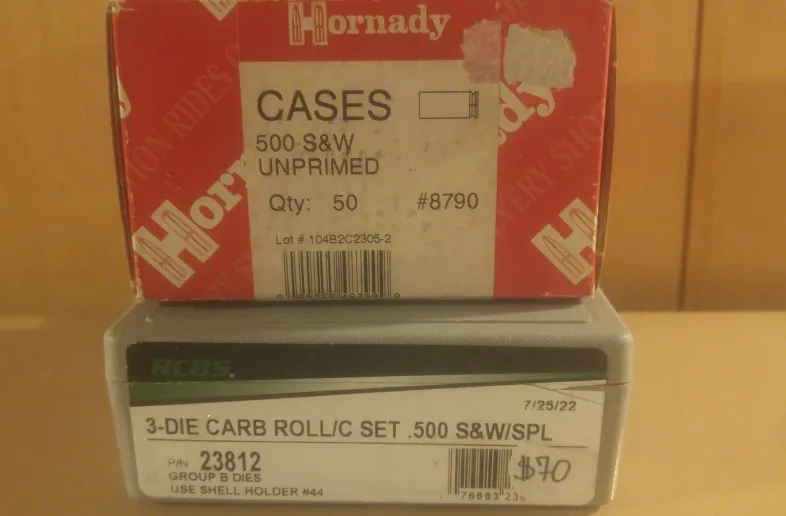 50ct of 500 S&W virgin brass and a NEW unused RCBS carbide 3 die set $130
