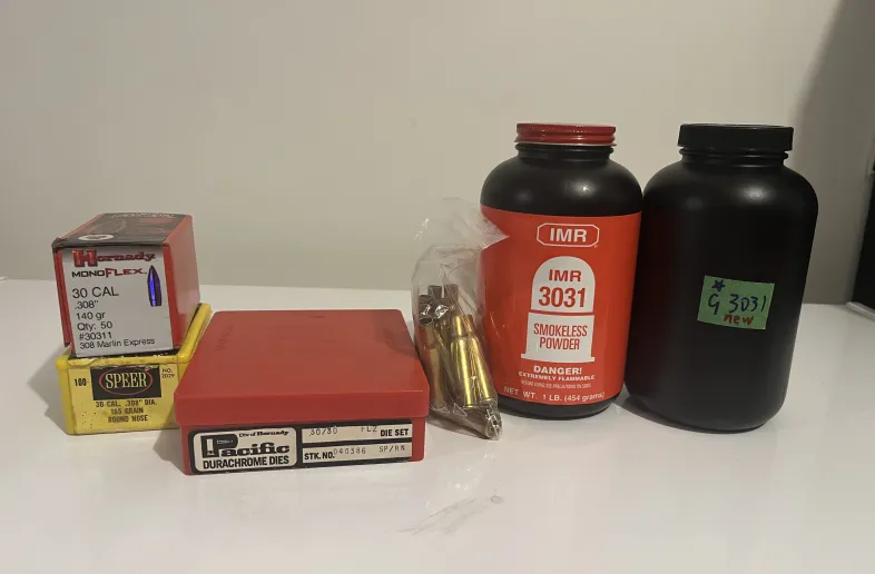 30-30 Winchester and 30-06 Springfield Reloading package Dies, bullets, powders and brass