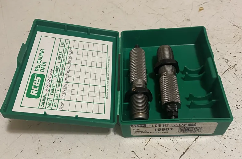 RCBS die set, 375 H&H in factory case. 80.00 Posted: Feb 27, 2026 Address: Whitehorse, YT, Y1A Category Reloading Dies Bullet Diameter .37 cal. Like new condition, shipped insured to your door for $85 Visits: 20 Read our Online Safety Tips