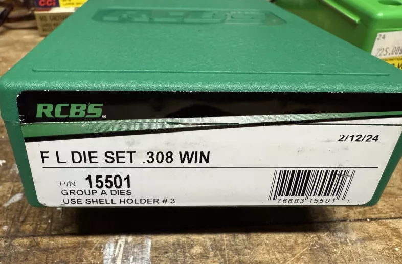 Brand new, not opened .308 Win RCBS Full length die set - full length sizing, seating and neck sizing dies.