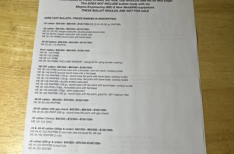 I will still be casting those bullets mentioned on page #1 (the ME and NW bullets).