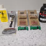 Package includes: TC #13 Bore Cleaner, TC Shockwave 250 gr Sabots 5 pk, Nosler Partition 250 gr Sabots 18 pk, 1 lb Hodgdon 777 Powder (sealed jug), 2 Butler Creek Rapid Loaders (one filled), TC Hunter Powder Measure #7048, 1 x 28" T Handle Ramrod, 1 x 32" T Handle Ramrod (2 pc). Selling as a complete package only. Priced for quick sale. $120.00