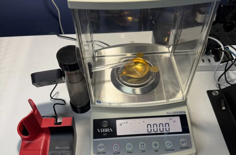I used this for powder measuring with the Hornady Vibra trickler (Not Included) This this is 10 times more accurate than the A&D FX-120i. It works excellent. A hole was put in the side window to allow the trickler to be inserted. I did the initial powder drop then finished it off with the trickler. Includes a full printed manual.
